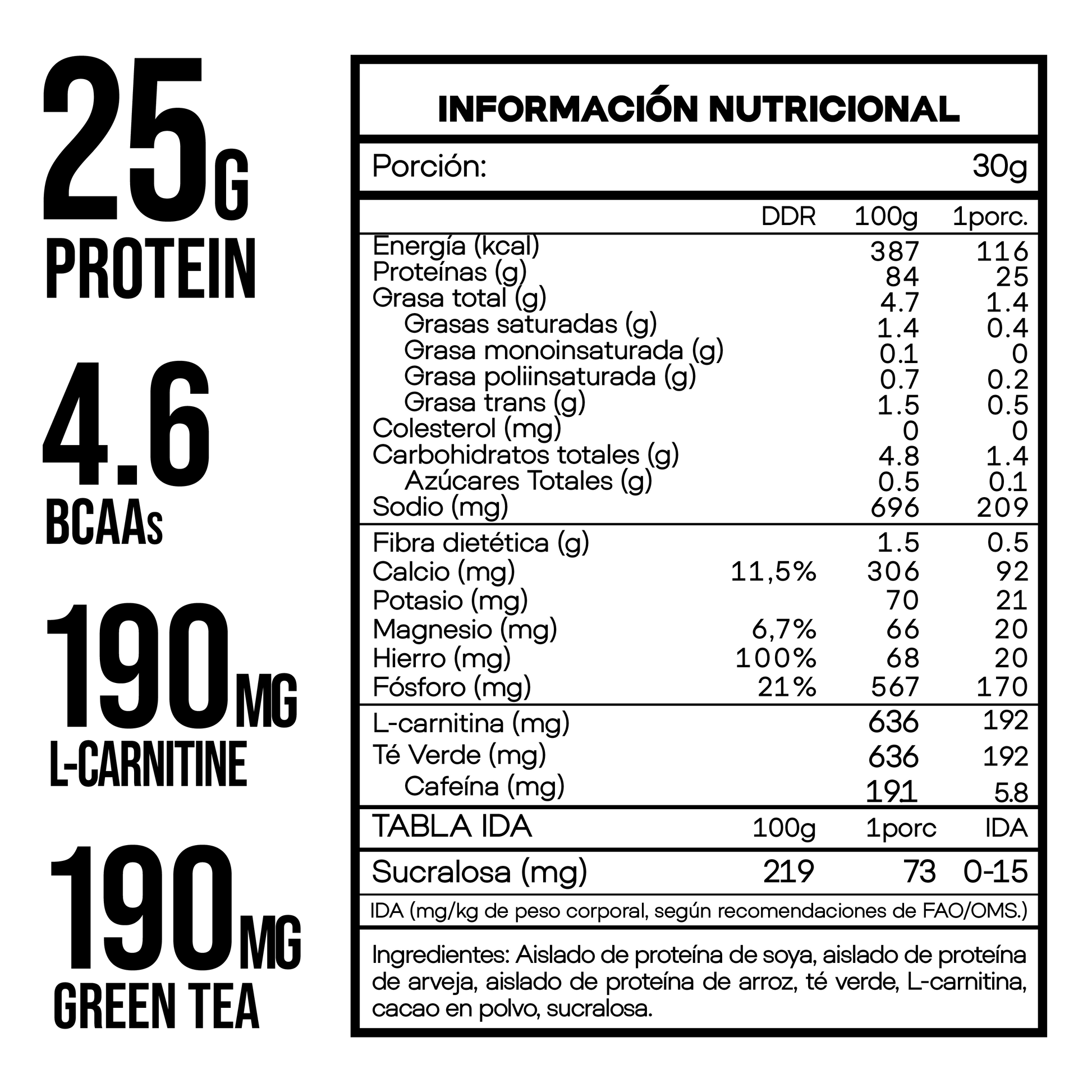 Batido cremoso y exquisito con 25g de proteína vegana por porción. Sacia, activa tu metabolismo y es libre de gluten y lactosa.