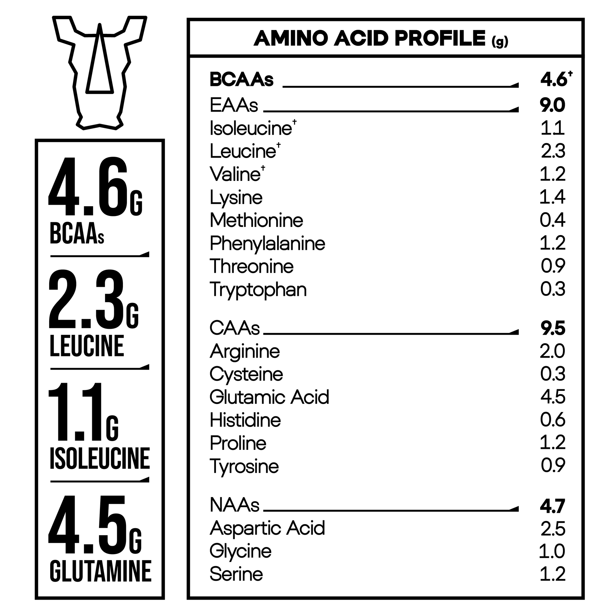 BCAAs – Un perfil de aminoácidos completo y balanceado que incluye 5.5 gramos de BCAA por porción.