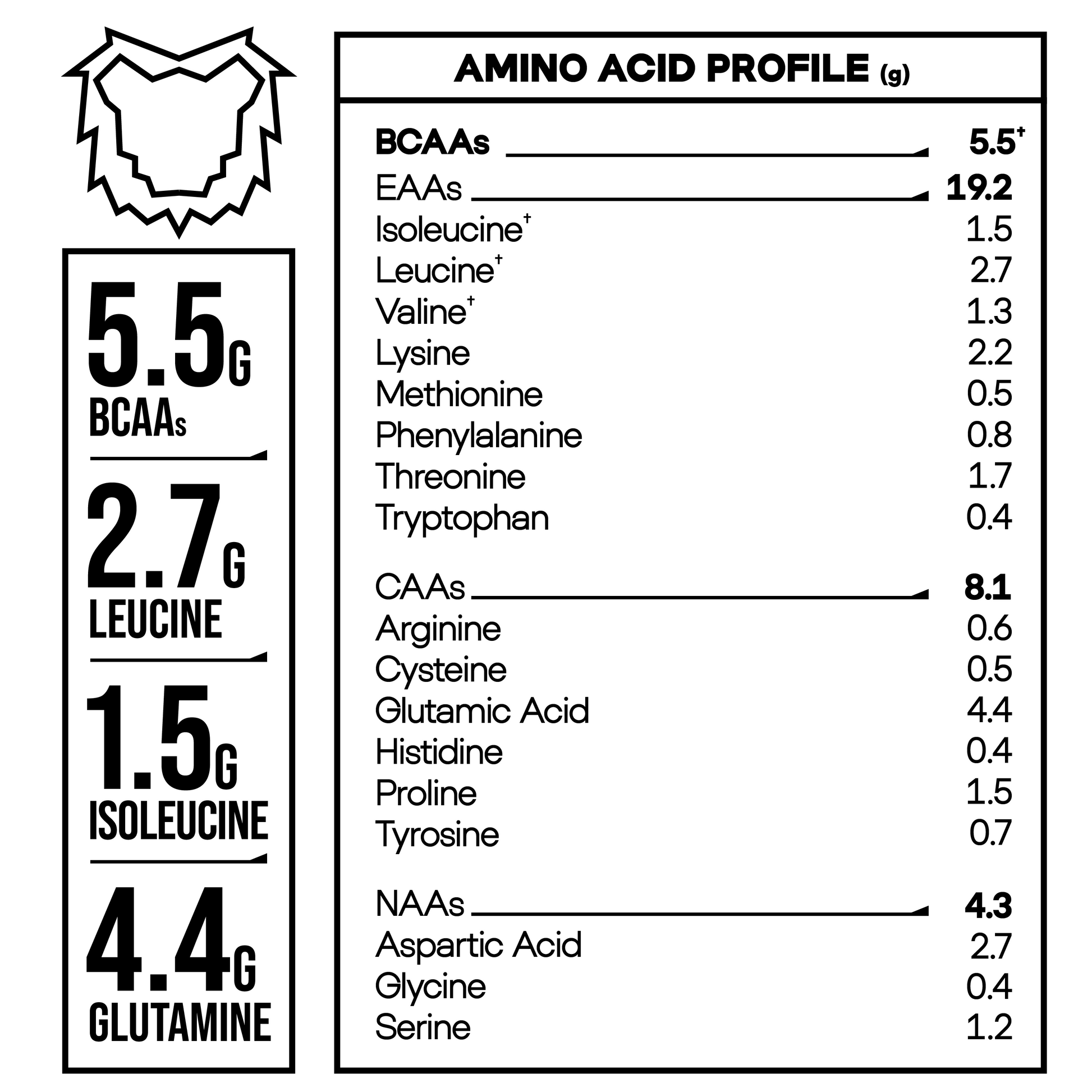 BCAAs – Un perfil de aminoácidos completo y balanceado que incluye 5.5 gramos de BCAA por porción.