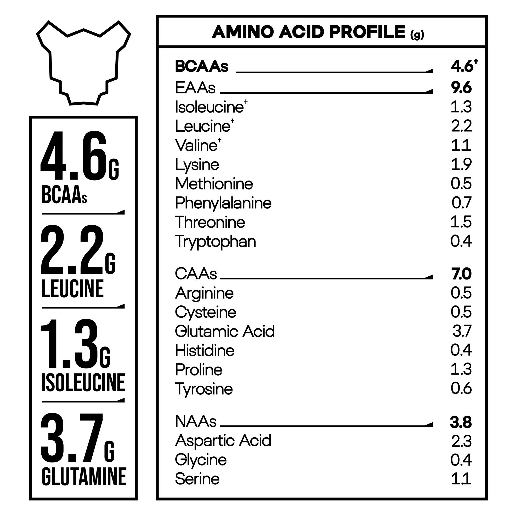¿Quieres aumentar tu masa muscular? – 0 gramos de grasa, 21 gramos de proteína y 4.6 gramos de BCAAs para fomentar el desarrollo de masa muscular.